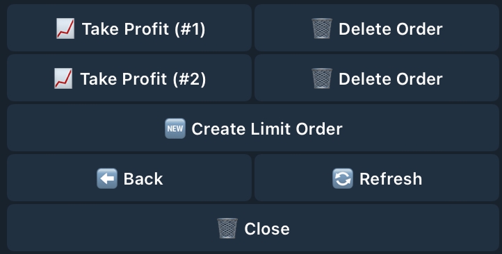 Once the orders are created, you can edit them by selecting the target order or cancel them by clicking ποΈ Delete Order in the dedicated menu, as shown below.